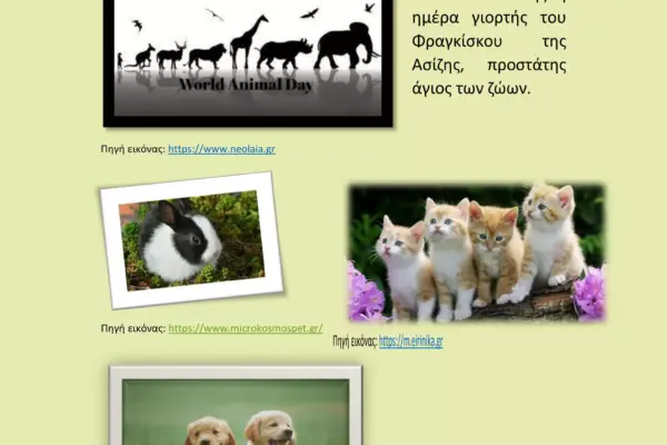 Εισαγωγή Η Παγκόσμια Ημέρα Ζώων, που γιορτάζεται κάθε χρόνο στις 4 Οκτωβρίου, αποτελεί μία σημαντική ευκαιρία για να ευαισθητοποιηθούμε σχετικά με την προστασία των ζώων και τα δικαιώματά τους. Ιδρύθηκε το 1931, κατά τη διάρκεια ενός συνεδρίου για την προστασία της άγριας ζωής στην Φλωρεντία, και έκτοτε έχει γίνει ένας παγκόσμιος θεσμός που ενώνει ανθρώπους…