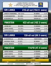 Αγώνας Σρι Λάνκα κατά Πακιστάν: Σκορ και Στατιστικά